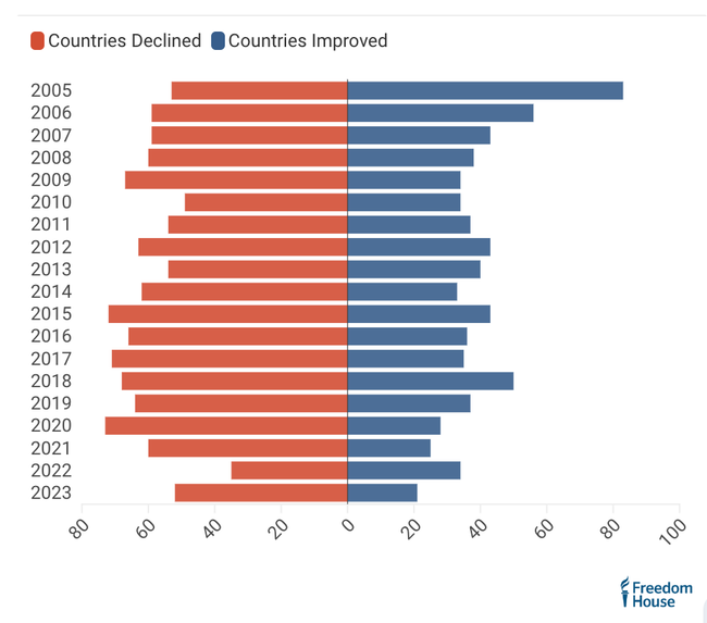 1. The Crisis of Liberal Democracy Democracy can be measured by different factors, such as fair elections, freedom of expression, and deliberation. The graph below from the V-Dem report shows an increase of countries declining in respect to these factors compared to those improving. Out of all of the factors, “deliberation is the only component worsening in both panels. It is declining in 19 countries in 2023, compared to 14 in 2013, while improving in eleven countries both in 2013 and 2023. The deliberative component measures respect for opposition, pluralism, and counterarguments with several different indicators and is central to the democratic process”. Freedom House found that attacks on pluralism were among the main reasons for the decline in democracy. They define pluralism as “the peaceful coexistence of people with different political ideas, religions, or ethnic identities”. It is true that the global averages could be weighed down by some specific nondemocratic countries. However, in the increasingly globalized landscape we are living in, countries are now more economically interdependent than ever. According to the Wall Street Journal, the initiative of “change through trade”, which aimed to increase shared values through international trade, actually benefited countries such as China and Russia, and allowed them to become even more “radical and undemocratic”, while making western democracies more economically dependent on these nondemocratic countries (Dopfner, 2023). Looking specifically at democracy in Spain, experts have said that “Spain may well be the most impressively democratic major country in mainland Europe” (Reid, cited by Varadarajan, 2023). Although the political situation is not without its struggles, Reid says that “Spain's politics are no more unkempt than the present Western norm”, and Freedom House classified it as “free”, with a score of 90/100 in their “Freedom in the World” report of 2024. The ideals at the core of democracy remain popular in Spain and the rest of Western Europe, making them part of the global median of 66% who believe that direct democracy is a good way to govern. These claims of freedom and democracy are not however in line with the perception of Spanish citizens, because another study by Pew Research Center found that large majorities in Spain are dissatisfied with how democracy is working in their country. This makes it part of the 51% of the 27 countries they polled who are dissatisfied with the state of democracy in their country, compared to 45% who are satisfied. Dissatisfaction with democracy is influenced by factors such as people’s perceptions of their politicians and the economic situation in the country, as well as others such as partisanship, because those who support parties that are not currently in power are more likely to say they are dissatisfied with democracy in their country. This last factor is important to note in the increasingly polarized political landscape of the world. Another factor they cited as important to satisfaction with democracy is the freedom of speech. “In every nation studied, dissatisfaction with democracy is more common among people who say the statement ‘the rights of people to express their views in public are protected’ does not describe their country well.” Scholars such as Little and Meng insist that democracy should be measured based on quantifiable factors, which are not susceptible to individual bias. They state that studies that claim that the state of democracy rely too much on subjective indicators, such as experts using their own judgment to rate the extent to which an election was free and fair (Little & Meng, in Willick, 2024). 2. The Risks of Disinformation The World Economic Forum (WEF) ranked misinformation and disinformation as no. 1 in their 2024 Global Risk Report. This risk rose to the top of the rankings because of the increase in AI generated false information. Their survey of 1,500 policy makers and industry leaders found that fake news written and being spread by AI was the biggest short-term risk to the global economy. AI was also labeled as an “emerging risk” by the Financial Industry Regulatory Authority (Finra) (Vynck & Lynch, 2024). Policy makers are struggling to keep up with the regulation of the rapid development of technology, and to support innovation while at the same time reduce their potential harm (Ye Hee Lee, 2023). A 2022 study by UTECA and the University of Navarra found that 95,8% of Spaniards believe that disinformation is a problem in current society. In the survey they conducted, 72,1% of Spaniards recognized that they had believed a message or video that turned out to be false once. The risk of disinformation is one that is rapidly growing, especially in recent years. The same study found that 83,3% of the Spanish population believes that the spread of disinformation has increased first during the pandemic, and again with the war in Ukraine. Although media companies are adapting to create more content online, and it appears that digital media is going to be the future of the industry, people seem to find more credibility in traditional media. In the study, 80,9% of Spaniards agree that television, radio, and print media provide the best guarantee against the proliferation of disinformation. This does not mean that the diversity of new media sources is only viewed negatively however, as seen in the statistic that 86,6% of Spaniards believe that thanks to the diversity of news programmes, they have a more pluralistic view of society. Misinformation and disinformation threaten “the cohesion of societies”, by increasing distrust, and which could lead to increasing polarization. The WEF considers societal polarization and misinformation and disinformation to be the two most closely linked risks in their framework, stating that they have the largest potential to amplify each other compared to other risks. T